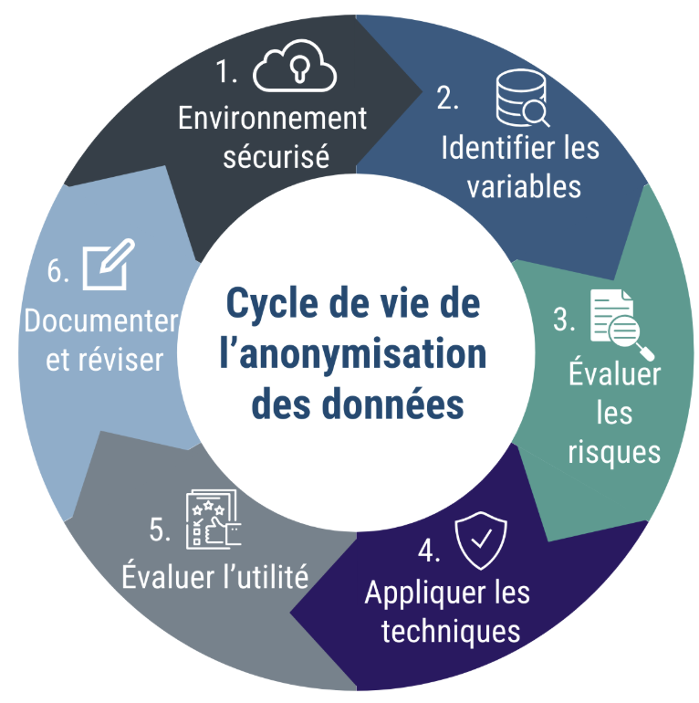 - Évaluer les risques – Évaluer la probabilité d’une réidentification en fonction du contexte et de l’utilisation prévue.